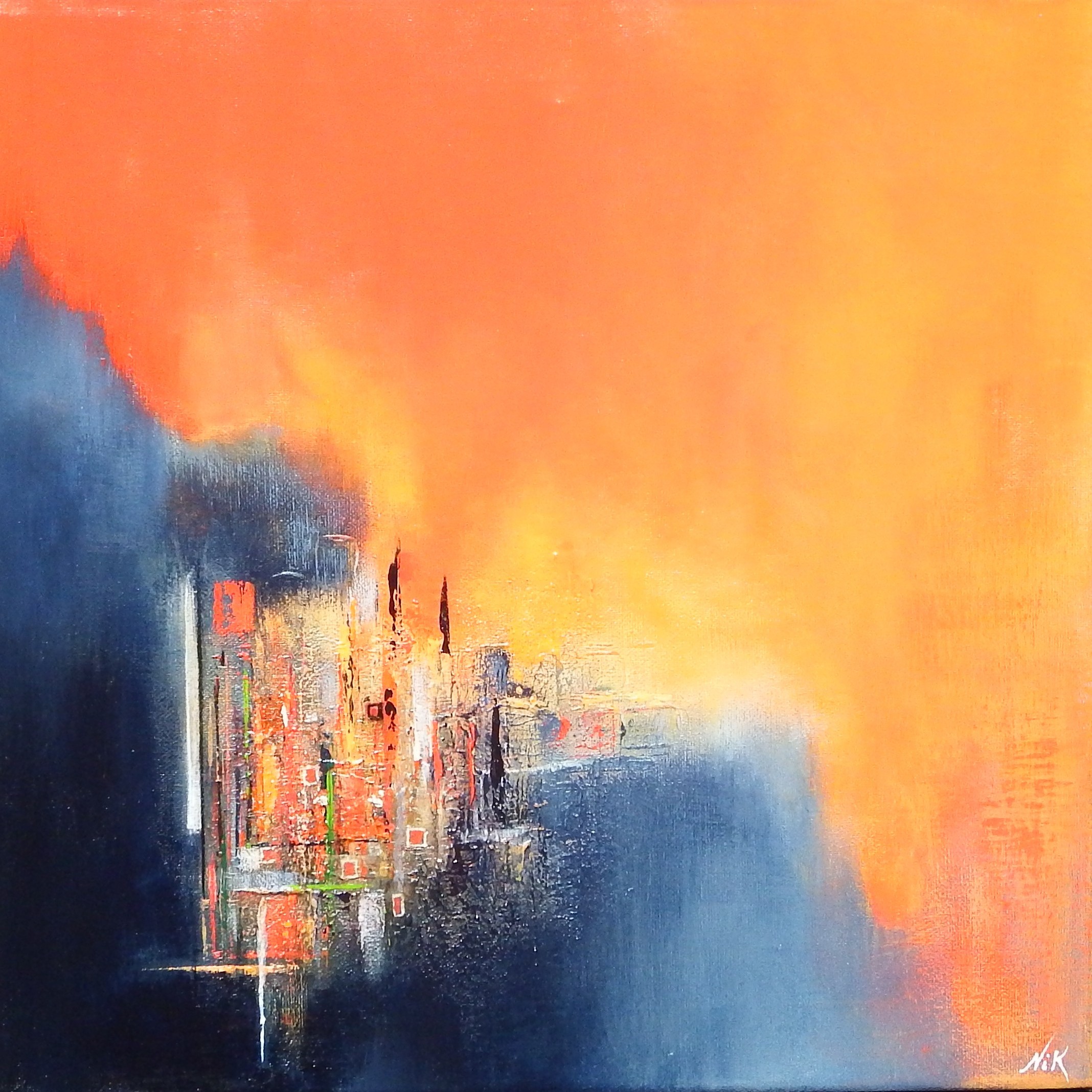 Paysage abstrait Nouvelle Ville Peinture acrylique sur toile 3D 3cm, 40 x 40 cm.De l’ombre sort une nouvelle ville qui s’étend vers la lumière. Date Septembre 2025 Prix Non disponible