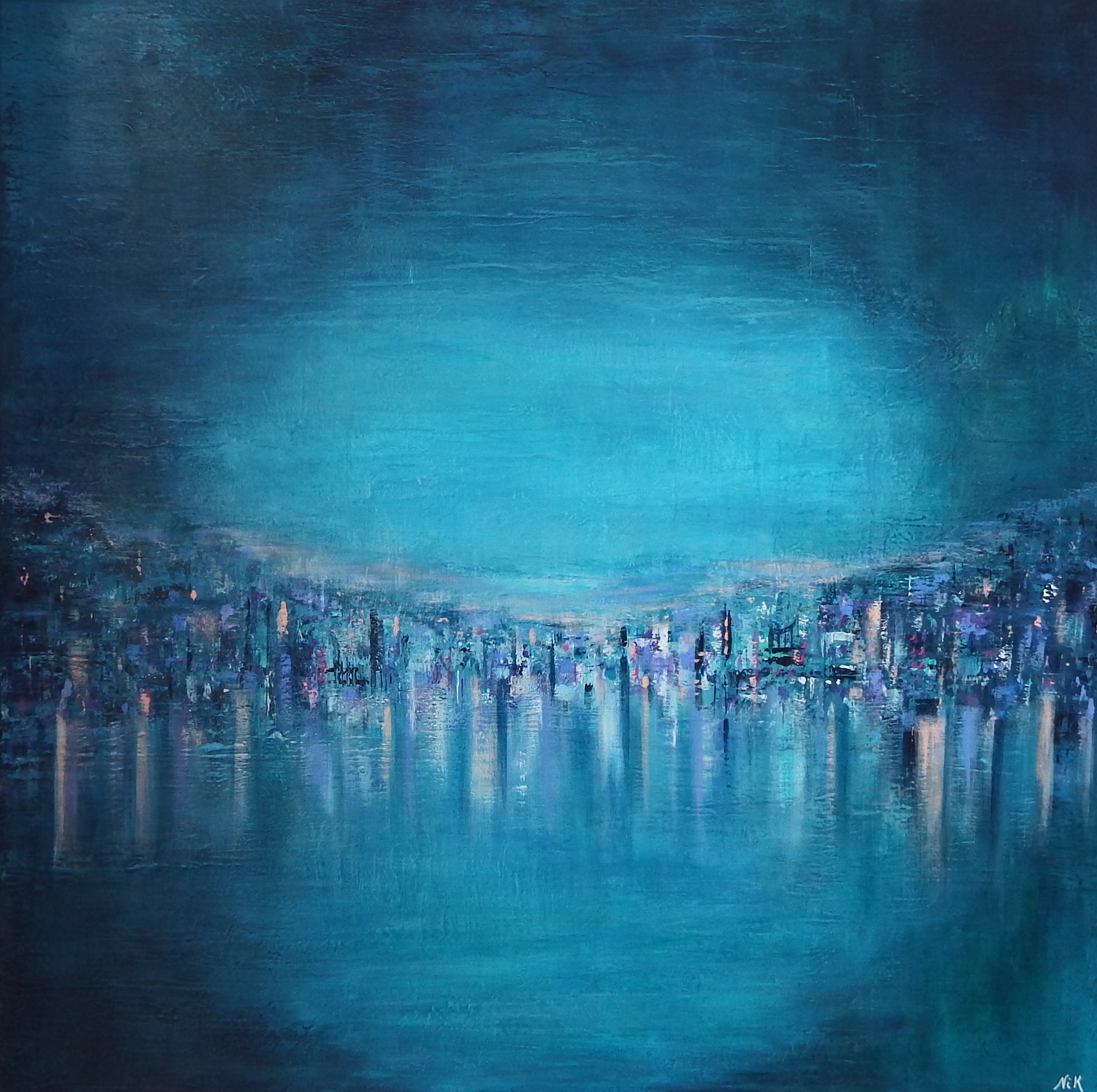 Paysage abstrait Rivage Peinture acrylique sur toile 3D 4cm, 80 x 80 cm. Date Septembre 2021 Prix Non disponible