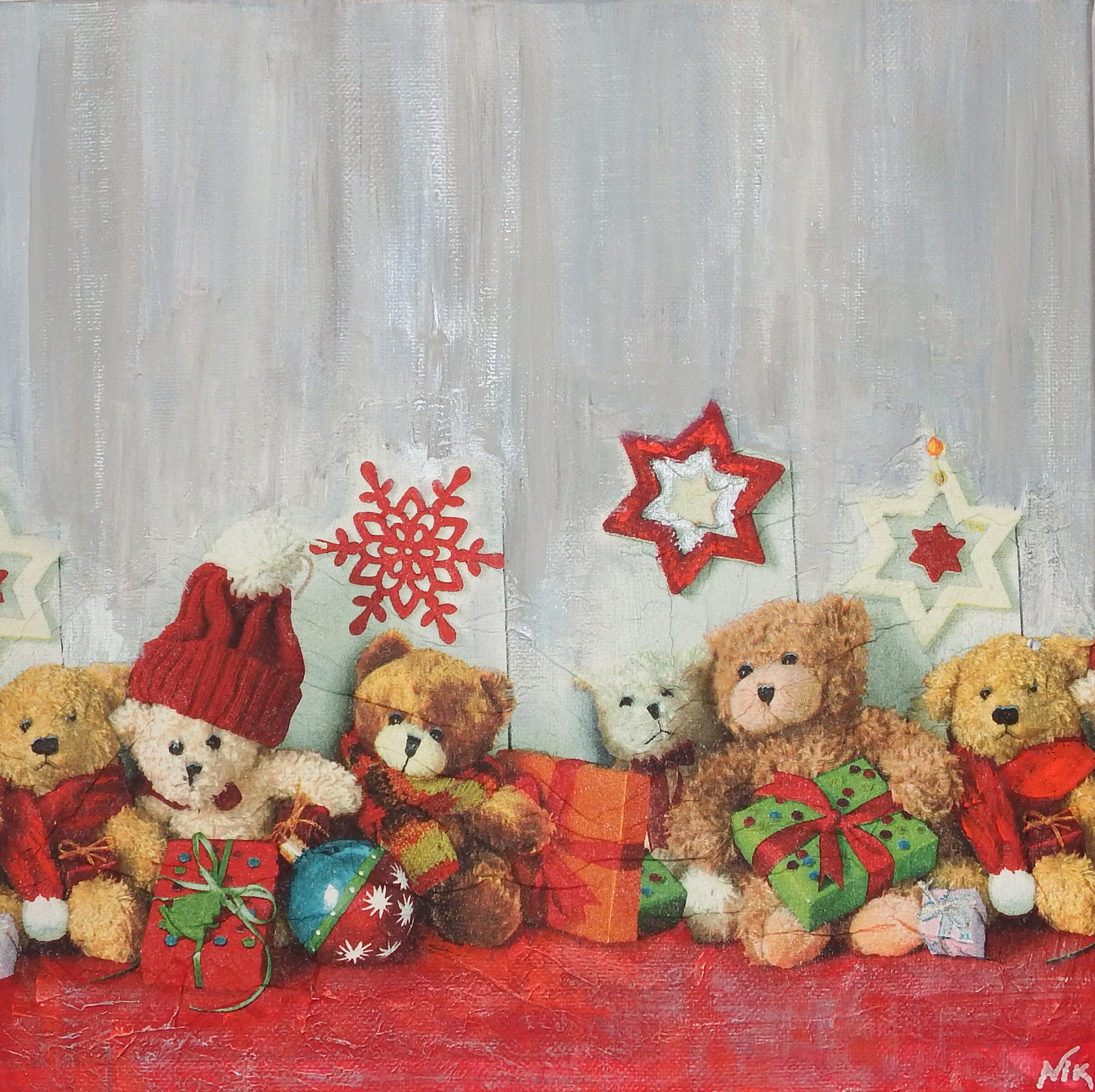 Art abstrait Triptyque Noël Peinture acrylique et techniques mixtes sur toiles 3D 4cm, 30 x 30 cm. Date Mai 2019 Prix Non disponible
